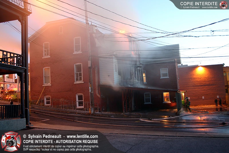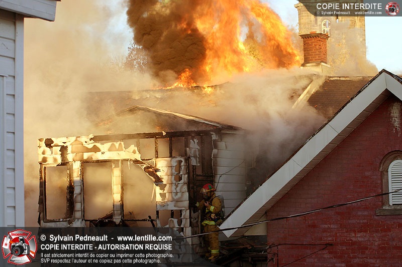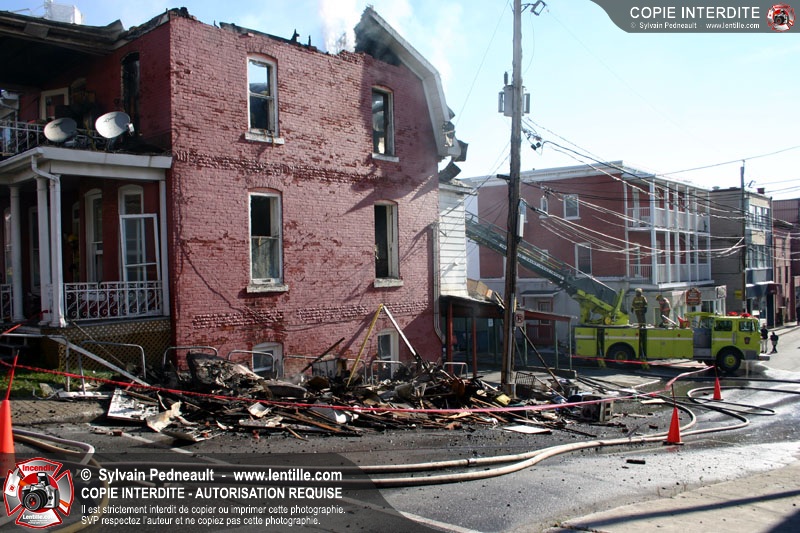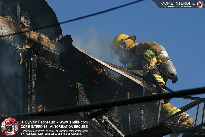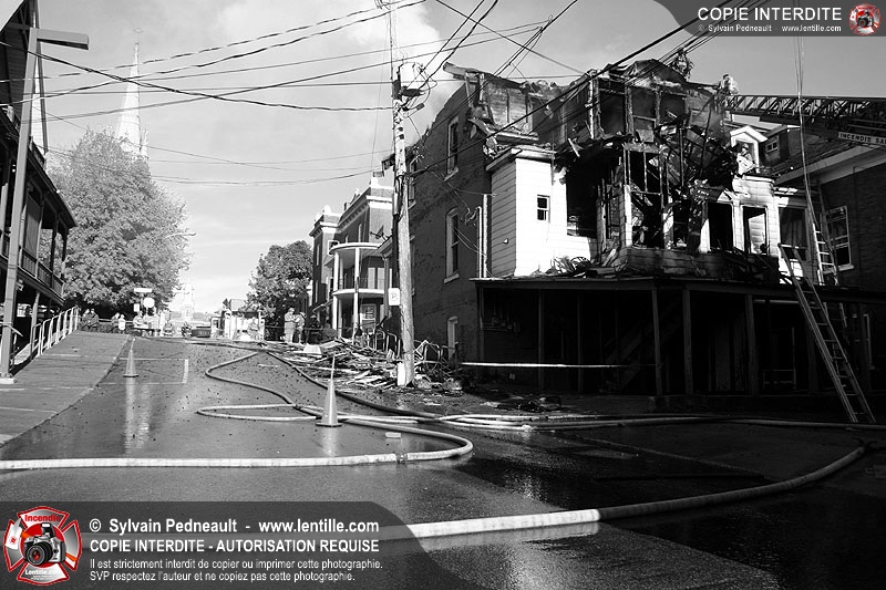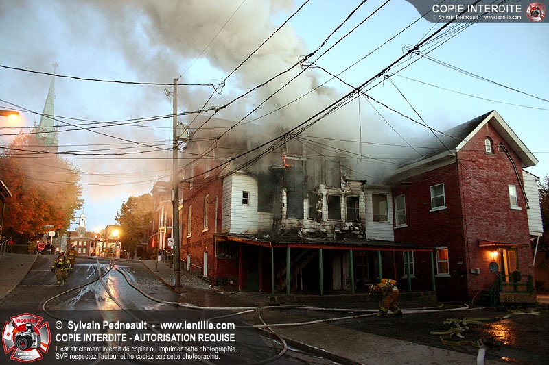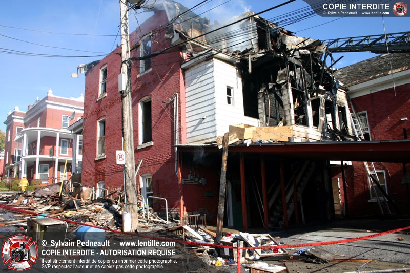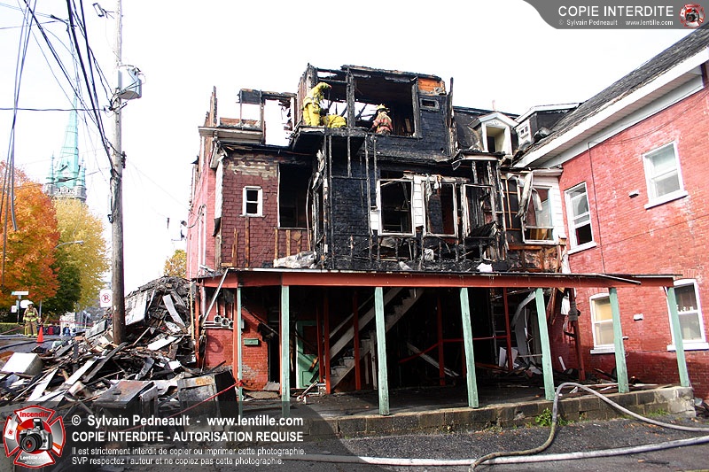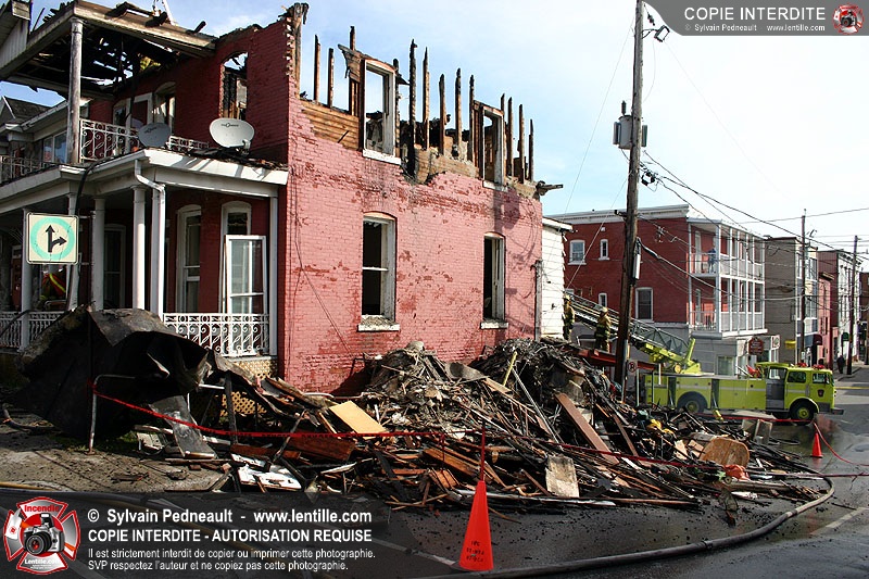 Un 10-06 est donné à 6h36 dimanche matin pour un incendie de résidence à côté de l'ancien restaurant Pépé qui a complètement brûlé le 7 juin dernier. En l'espace d'un peu plus d'une heure, l'état d'alerte passe en 10-15. Le 10-10 est donné vers 12h30. L'immeuble est une perte totale.