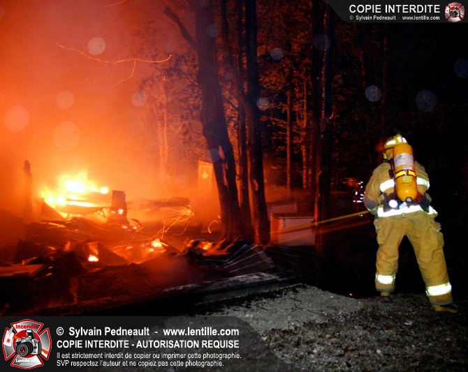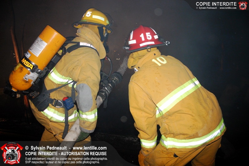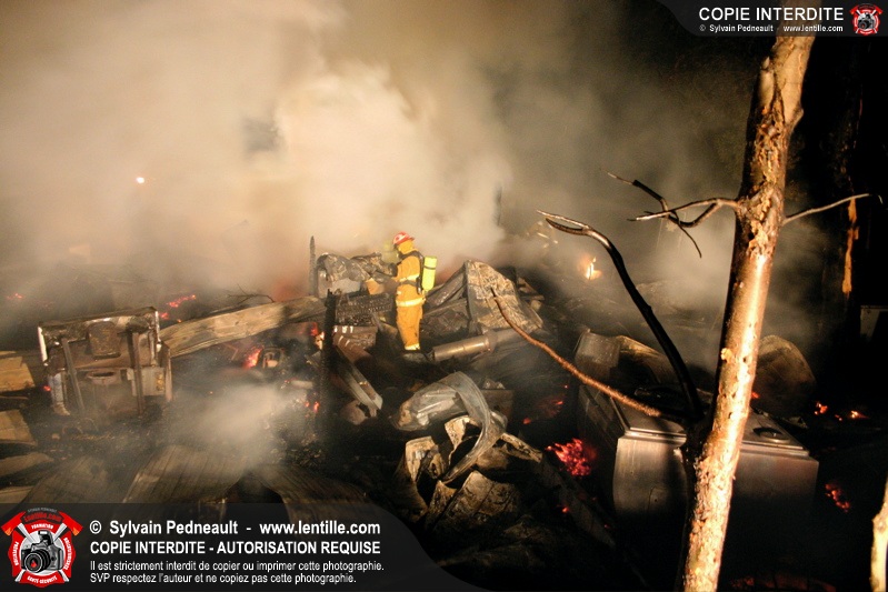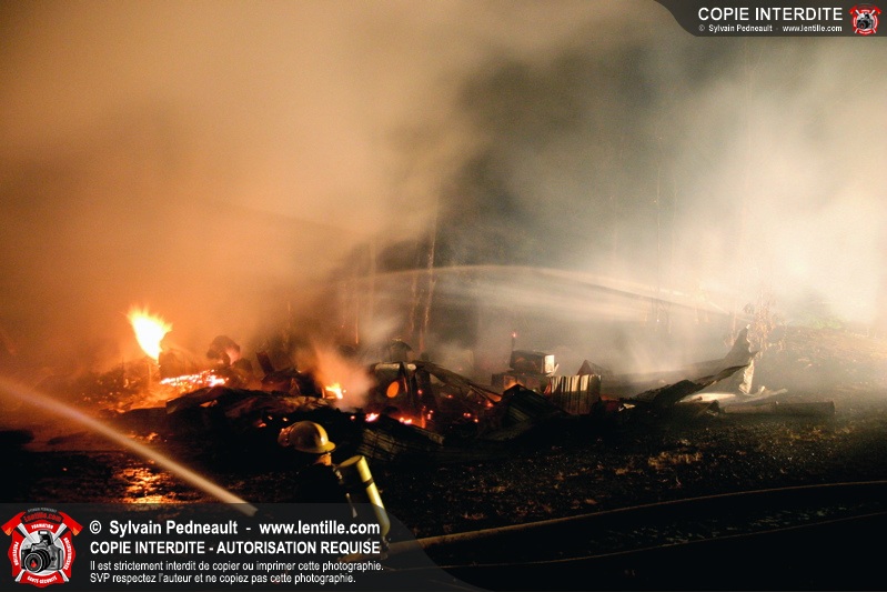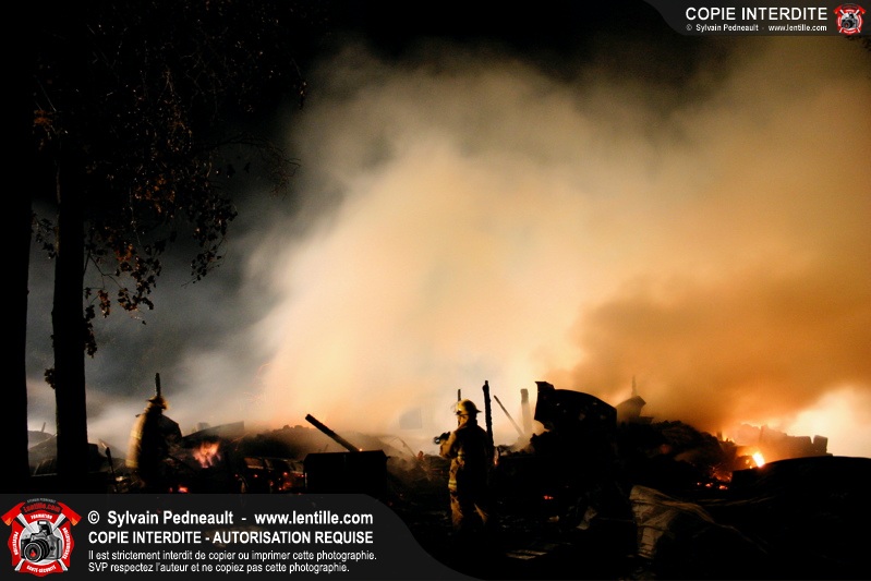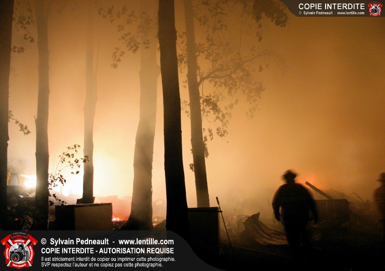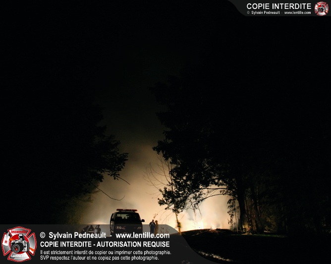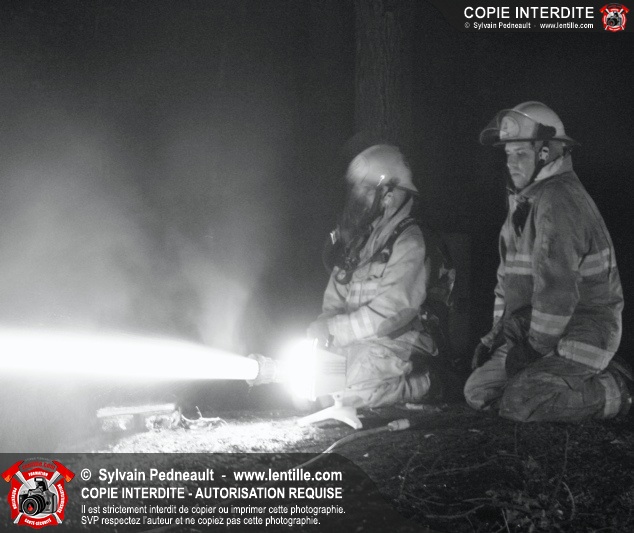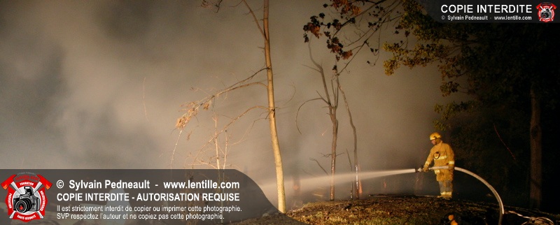 Le Service de sécurité incendie de St-Pie répond à un appel pour fumée et flammes apparentes dans le fond d'un champ de maïs. Arrivée sur les lieux, la première unité rapporte qu'il s'agit d'un incendie majeur dans une érablière.