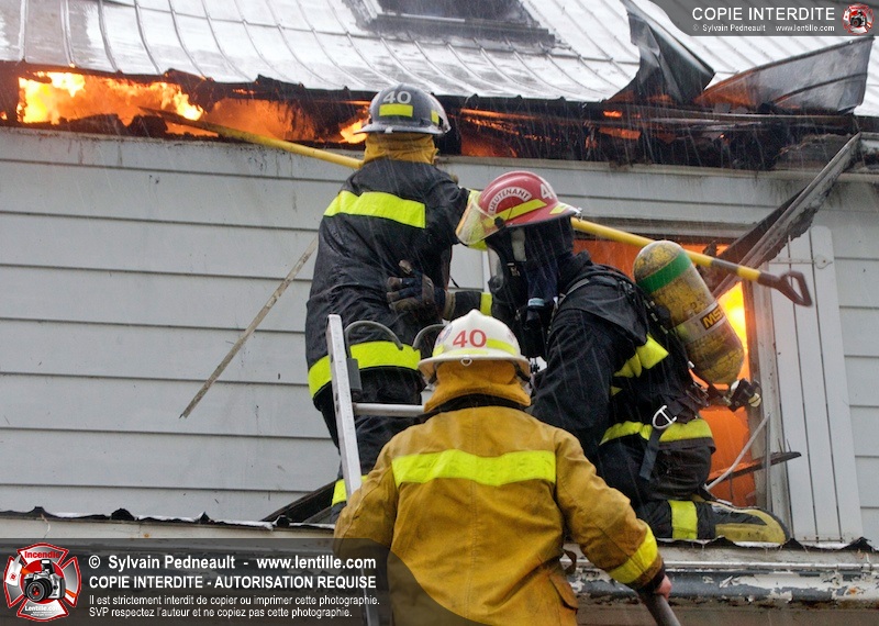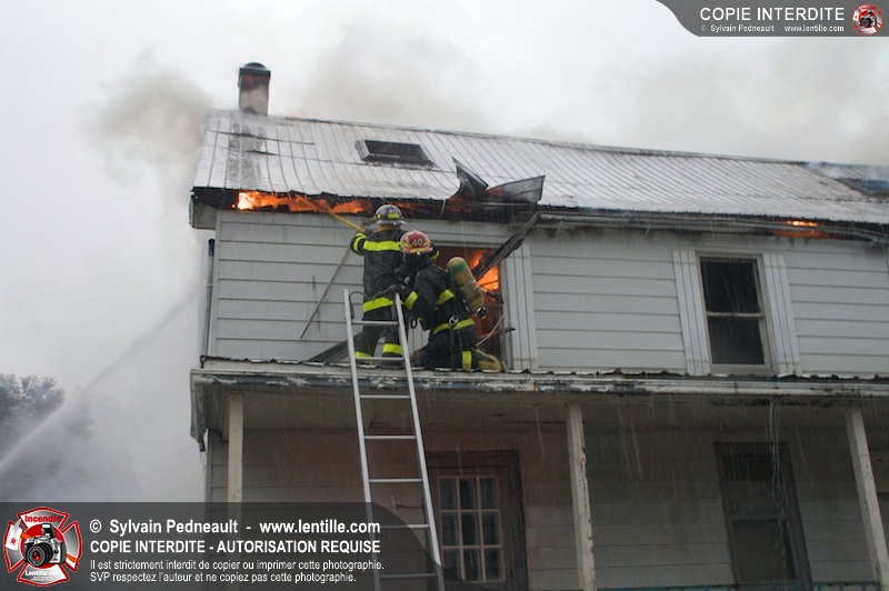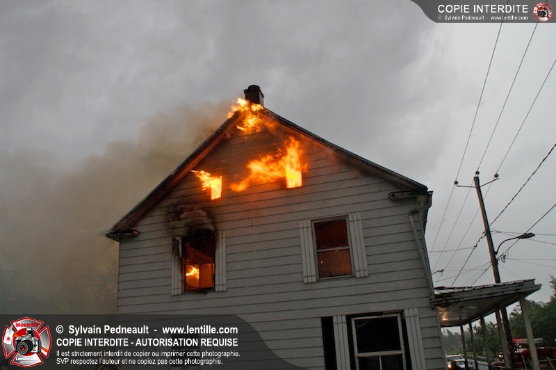 Les pompiers de St-Jude ont dû intervenir en plein milieu d'un violent orage pour combattre un incendie dans une vieille résidence. Un code rouge a dû être sonné au moment où l'orage était particulièrement dangereux.