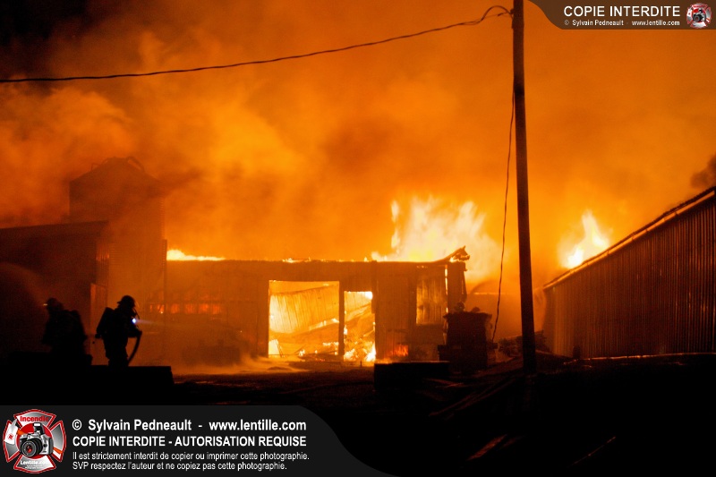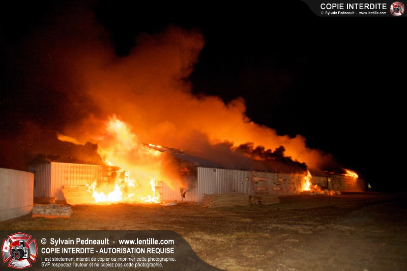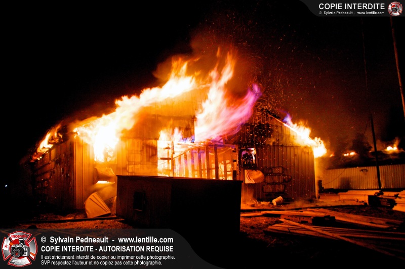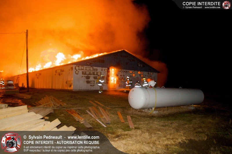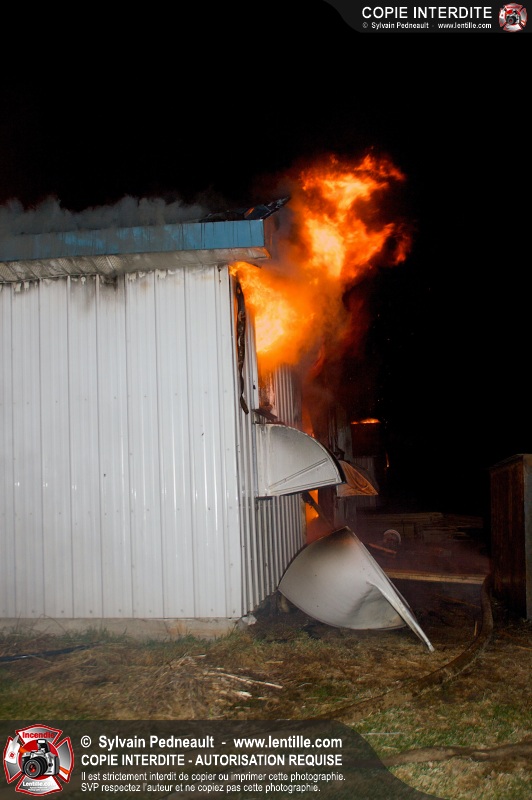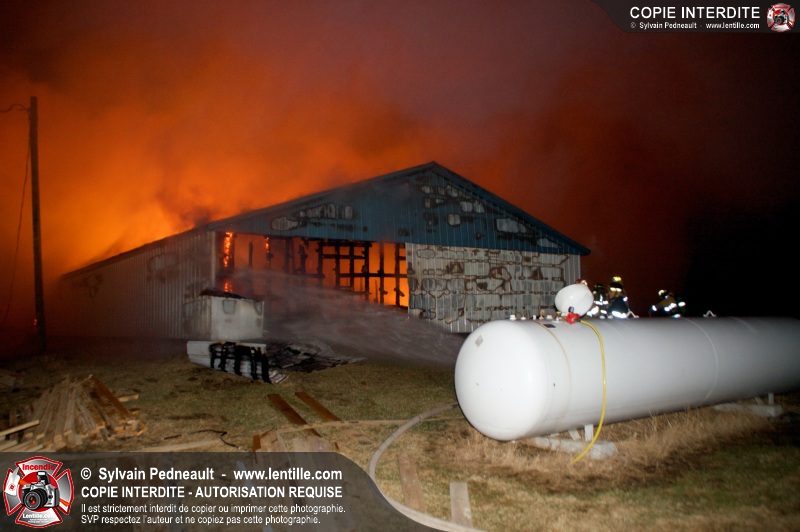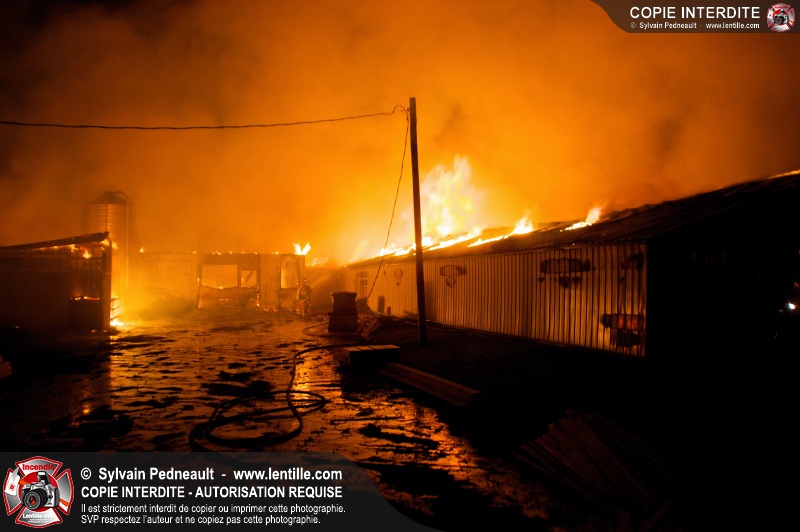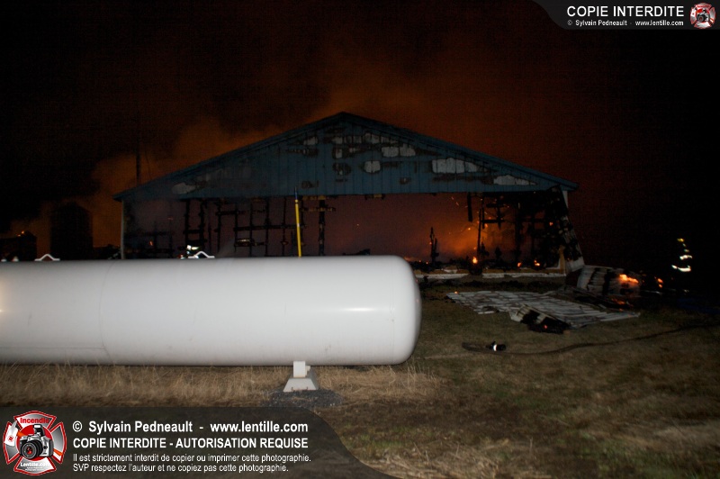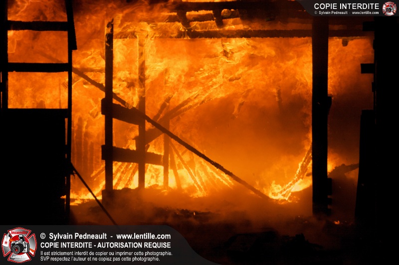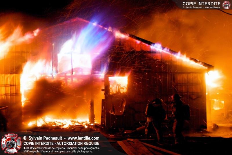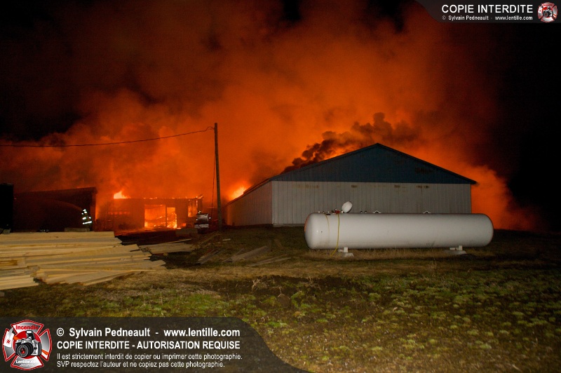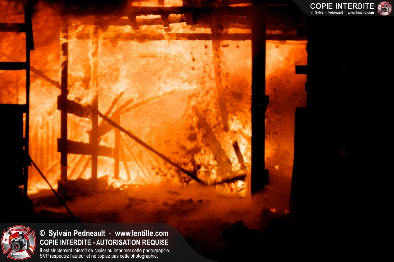 Un incendie majeur a complètement détruit une grande ferme en rénovation sur le 2ième rang à Ste-Hélène.