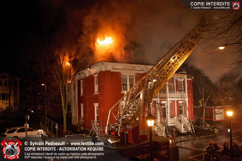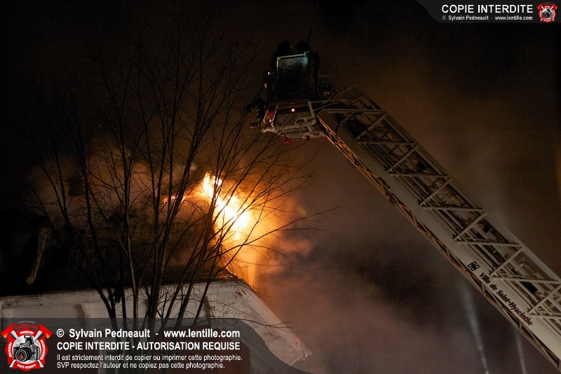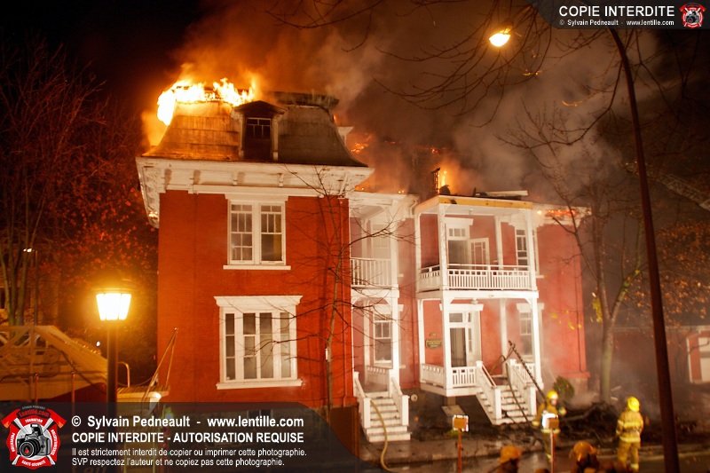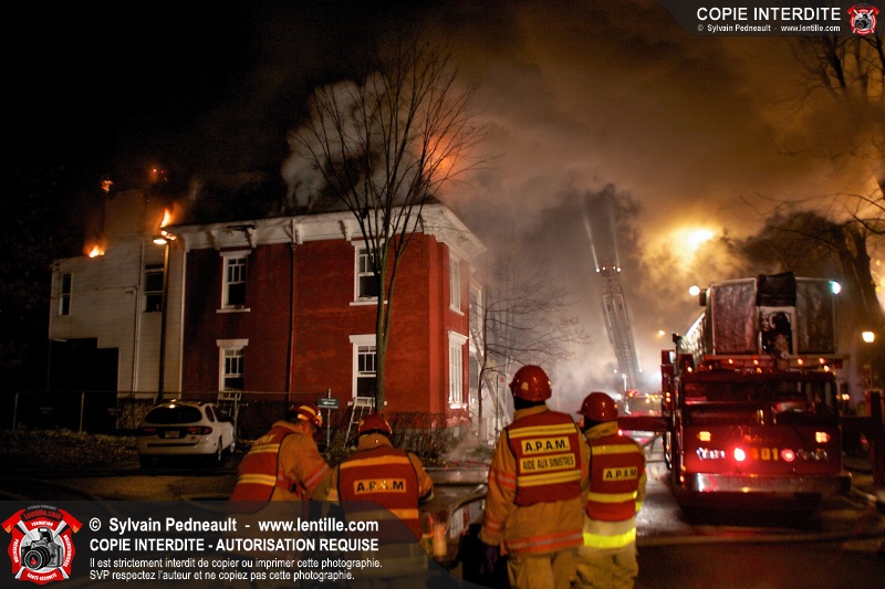 Les pompiers de presque toute la MRC sont intervenus sur un incendie de 5 alarmes dans un bâtiment centenaire résidentiel et commercial sur l'avenue de l'Hôtel-Dieu à Saint-Hyacinthe. L'incendie aurait d'abord détruit un garage, pour ensuite se propager au bâtiment de trois étages. L'immeuble est une perte totale.