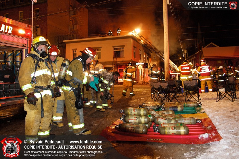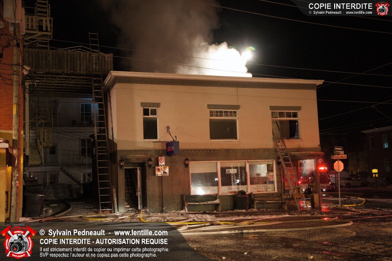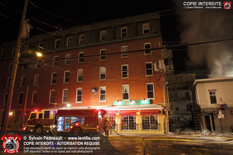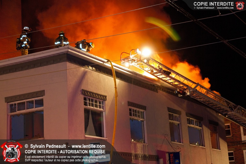 Un incendie majeur dans un bâtiment commercial et résidentiel du centre-ville de Saint-Hyacinthe a nécessité cinq alarmes, mobilisant ainsi plus de cinquante pompiers et un grand nombre de véhicules incendie.